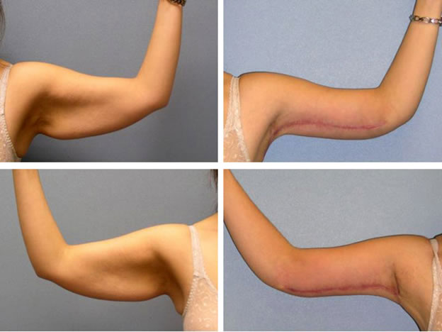 Во всех других случаях врач назначает брахиопластику, которая представляет собой эстетическое пластическое исправление формы рук между суставом локтя и подмышечной областью в основном за счет подтяжки кожных покровов плеча и верхней трети предплечевой зоны. Это выполняется методом хирургического иссечения лишней кожи вместе с подкожной жировой тканью.